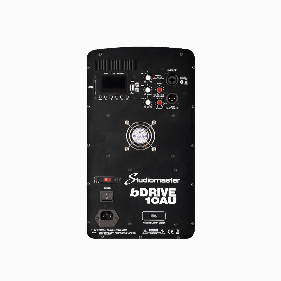 Introducing the Studiomaster bDRIVE 10AU, a 10″ 2-way passive speaker cabinet with output up to 250W rms power, a lightweight high quality durable injection moulded cabinet, additional bluetooth playback and usb/sdcard media player