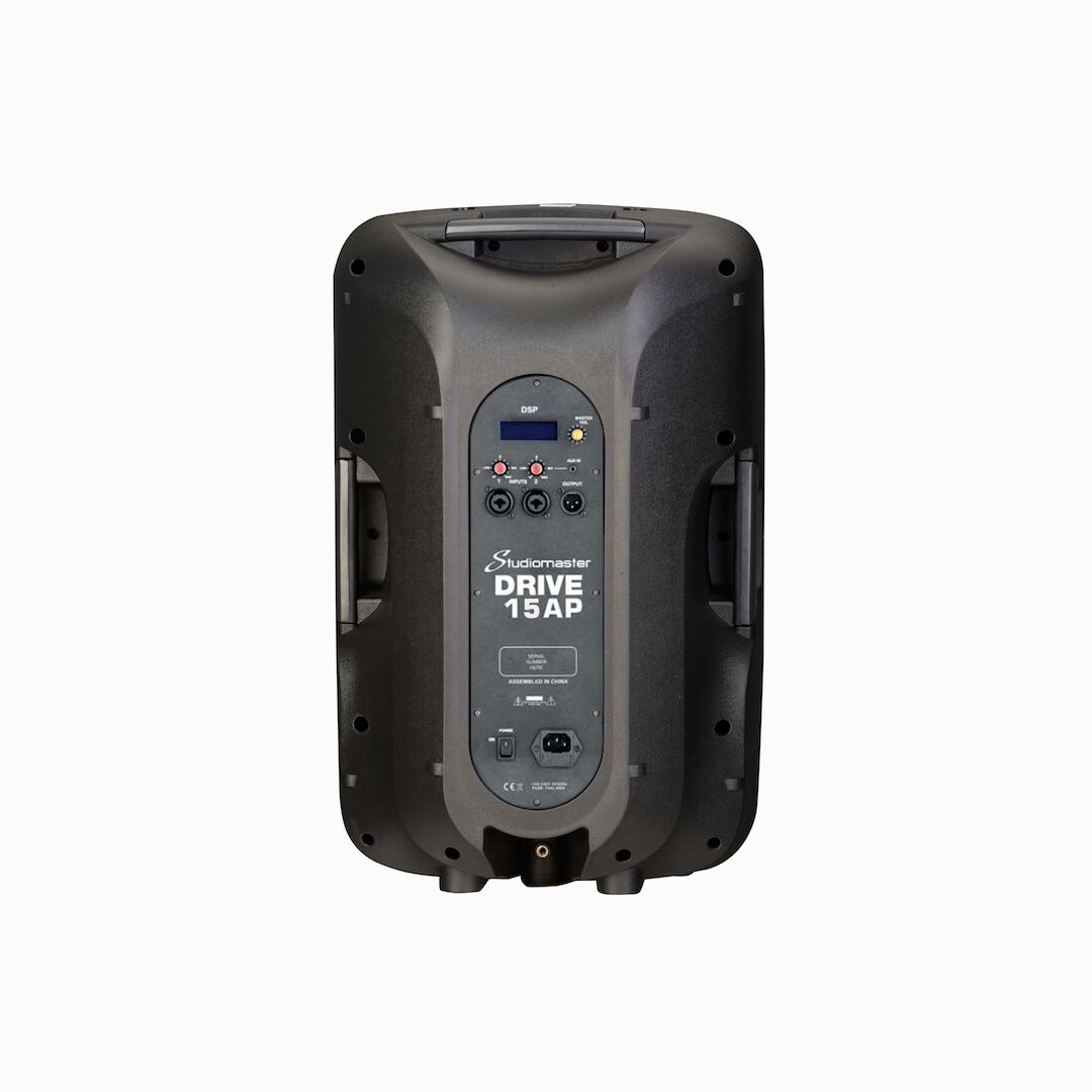 Introducing the Studiomaster bDRIVE 15AP, a 15″ 2-way passive speaker cabinet with output up to 400W rms power, a lightweight high quality durable injection moulded cabinet, delay,limiter,3 band EQ,three carry handles 4 cabinet models and 24bit / 48kHz DSP on AP model